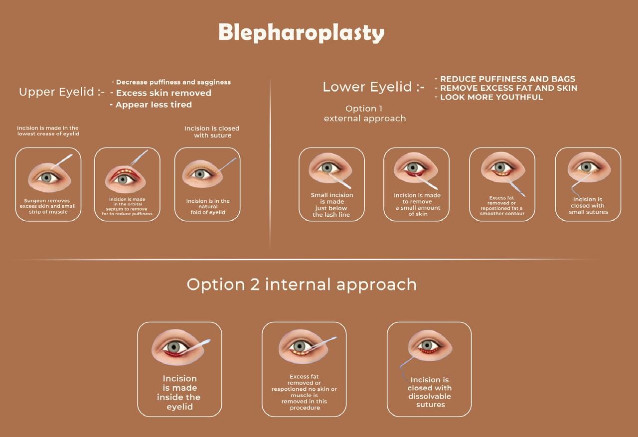 • Combination Blepharoplasty: Corrects both upper and lower eyelids for comprehensive rejuvenation